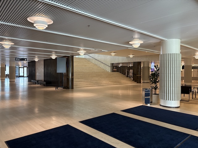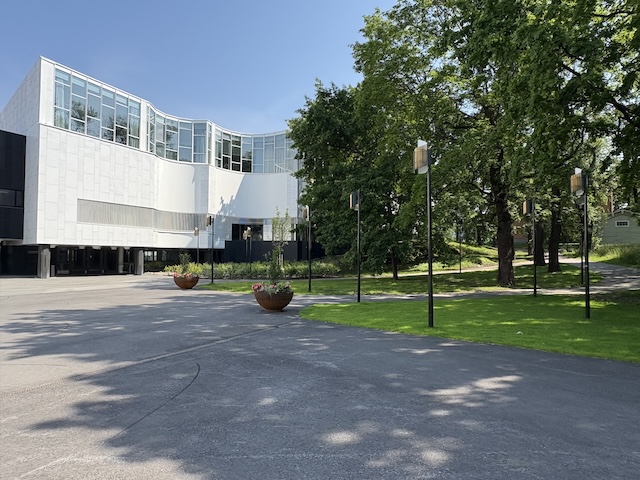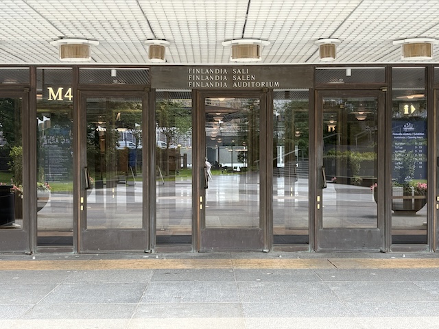建物はトーロ湾に向かって建っており、鉄道でヘルシンキに到着する人にしかフィンラディアホールの正面の顔を見せていません。
