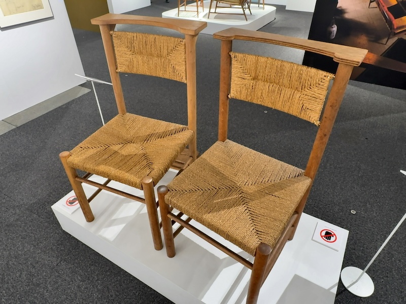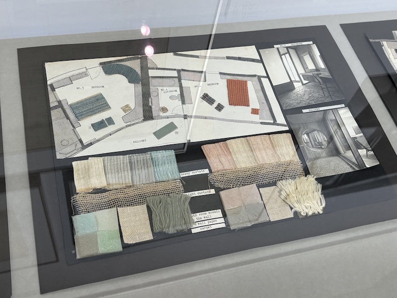本展覧会では、ノエミが建築の設計からインテリアまで手がけた旧カニングハム邸(1954)、旧伊藤邸(1963)なども紹介しながら、インテリアの家具やテキスタイルなども展示されています。